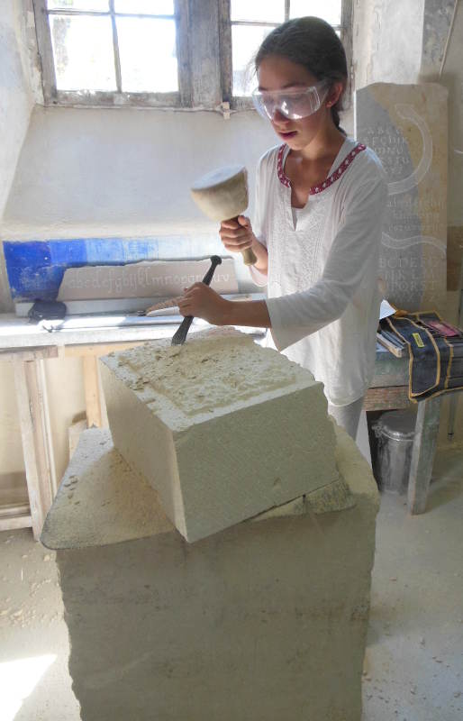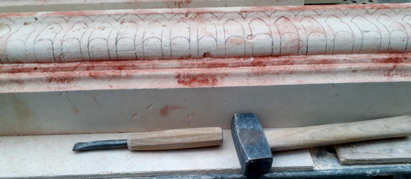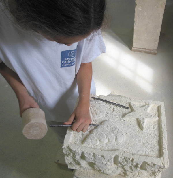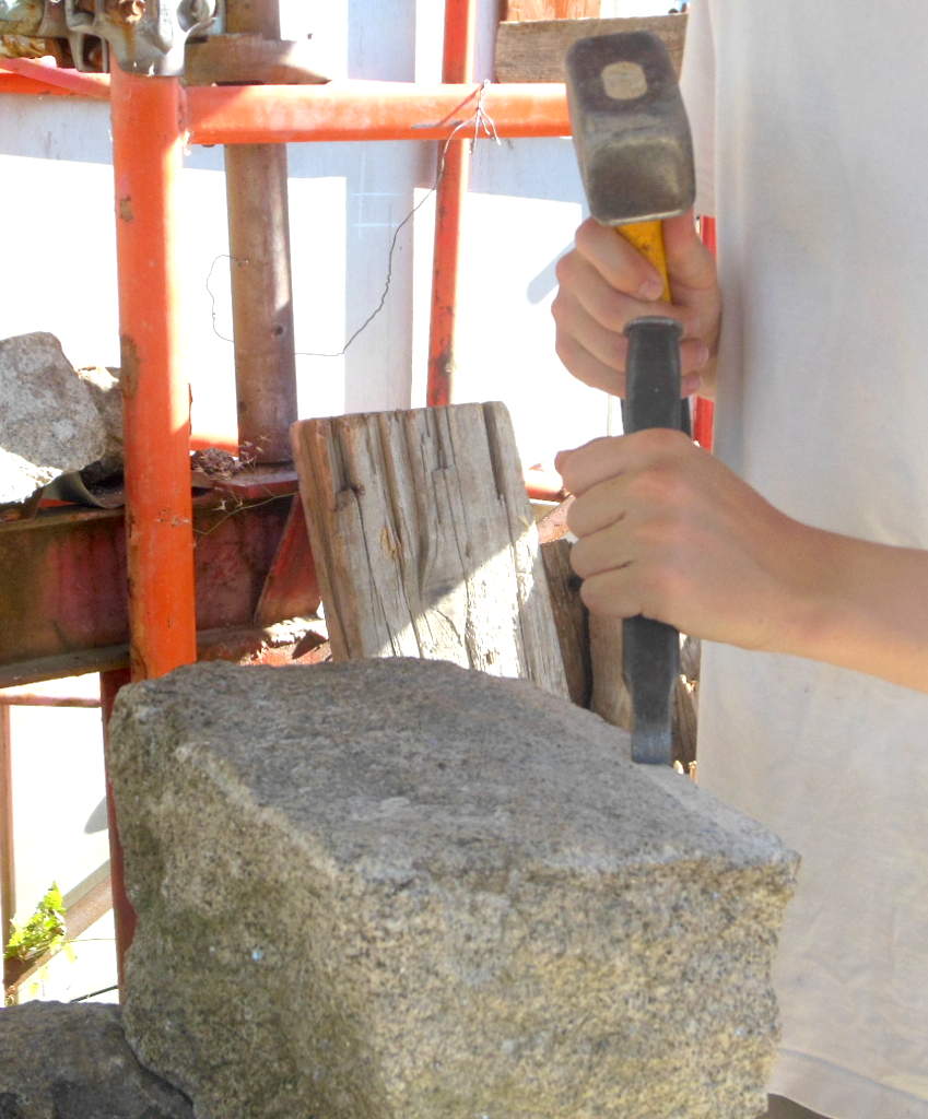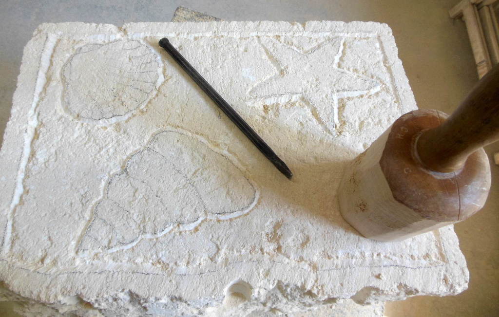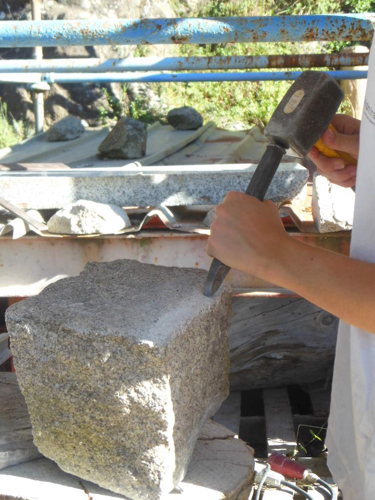 Lors de ce stage, j'ai pu faire de la taille de pierre, pierres qui étaient ensuite utilisées pour la reconstruction du clocher de la chapelle.