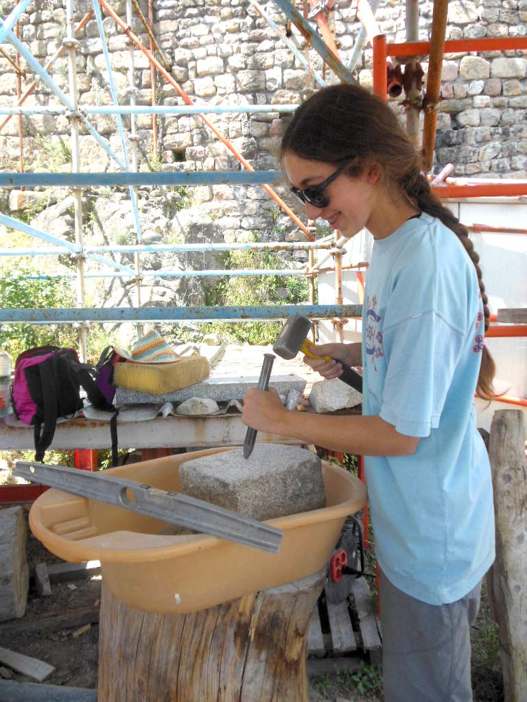 Durant la deuxième semaine, j'ai participé à la reconstruction d'un garde-corps (taille de pierre, mise au cordeau, mortier)