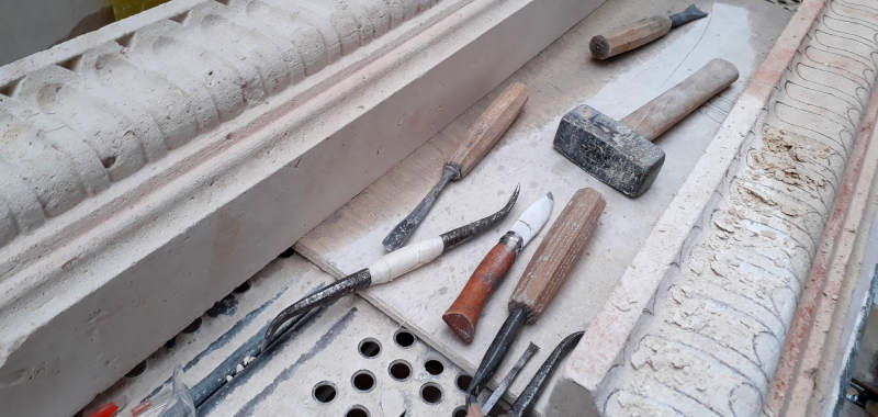 Stage de restauration de monuments avec l’Atelier Jean-Loup Bouvier, avec Florence Espana, au Grand Palais et sur l’église de la Madeleine à PARIS